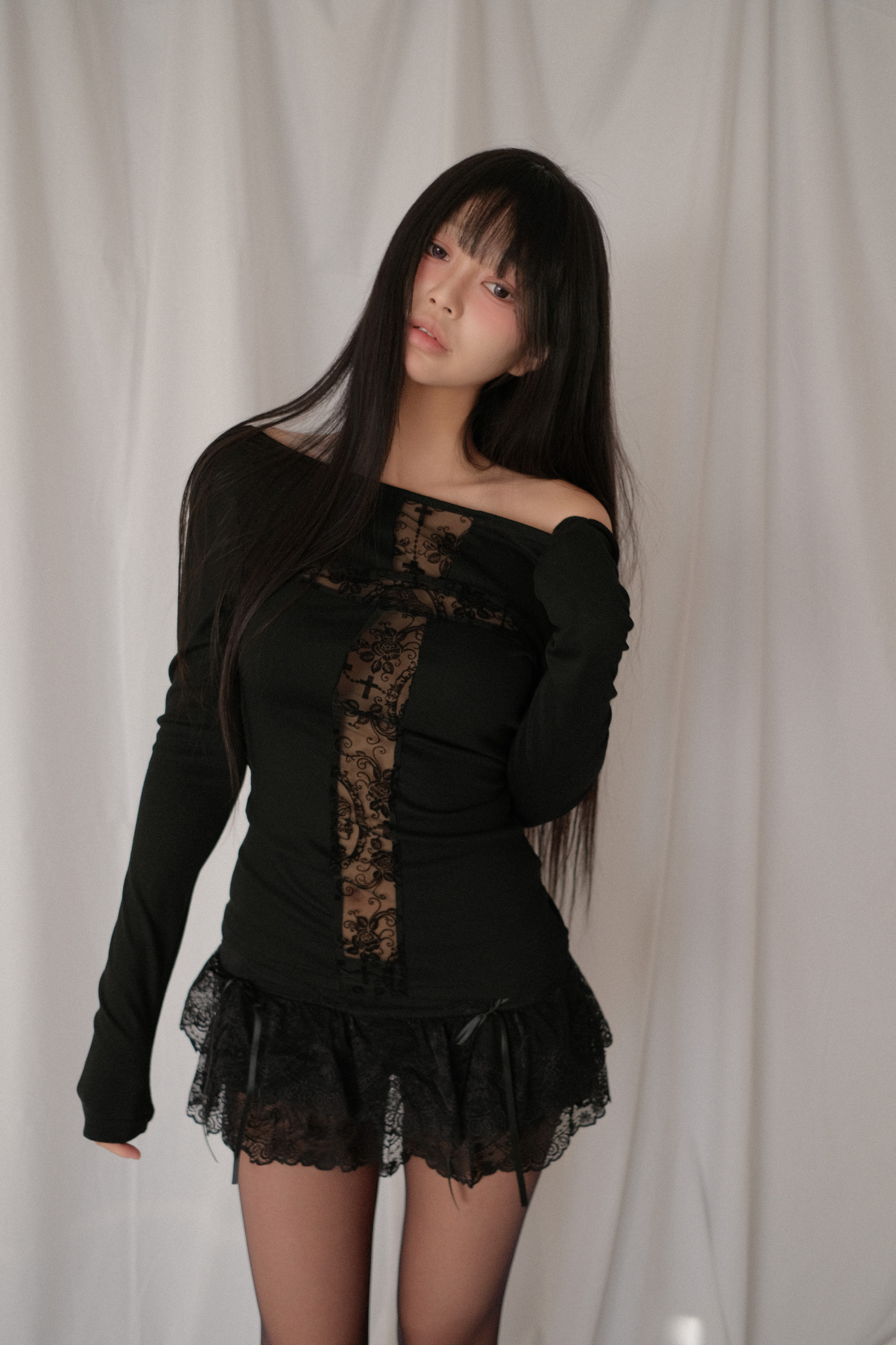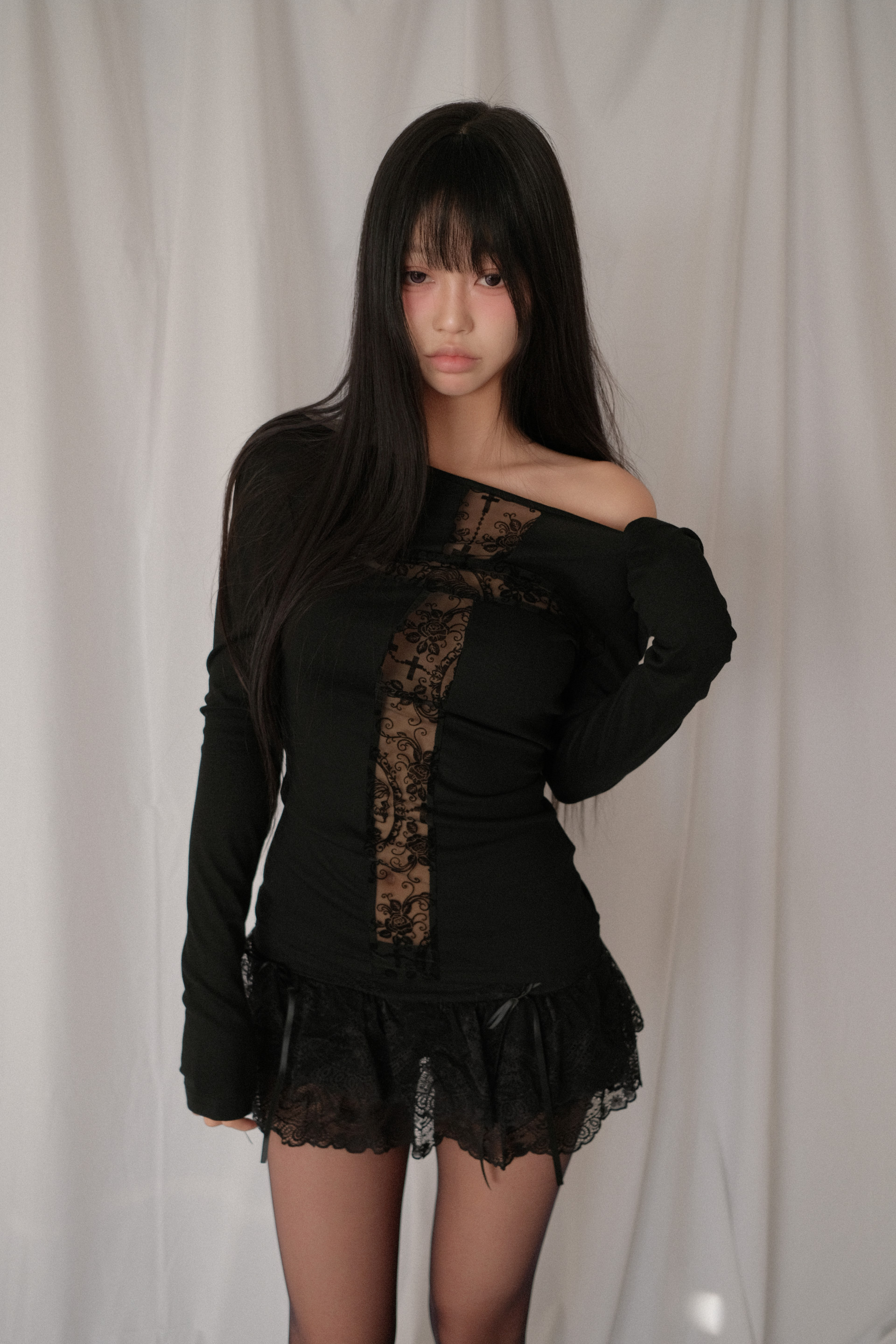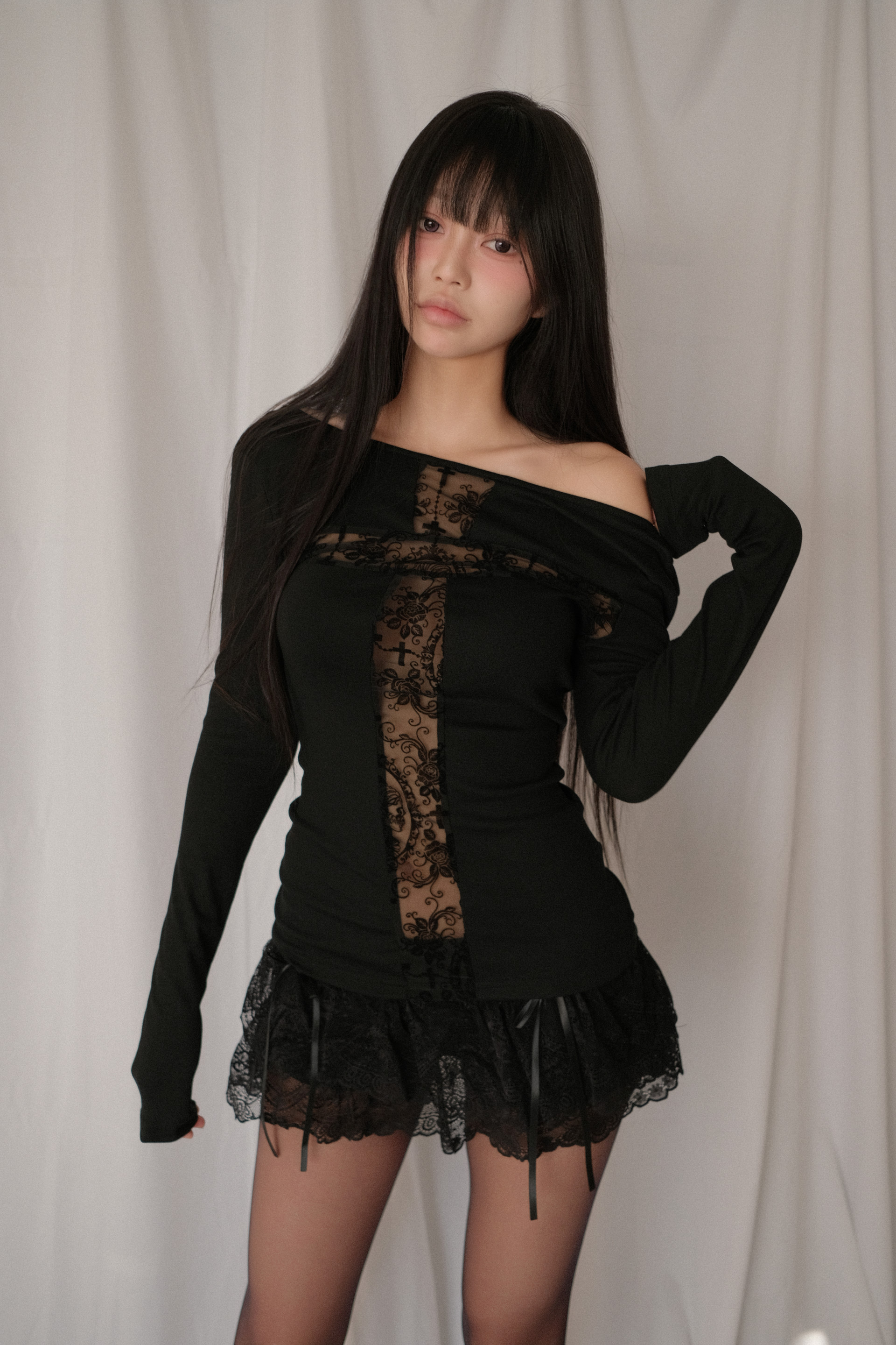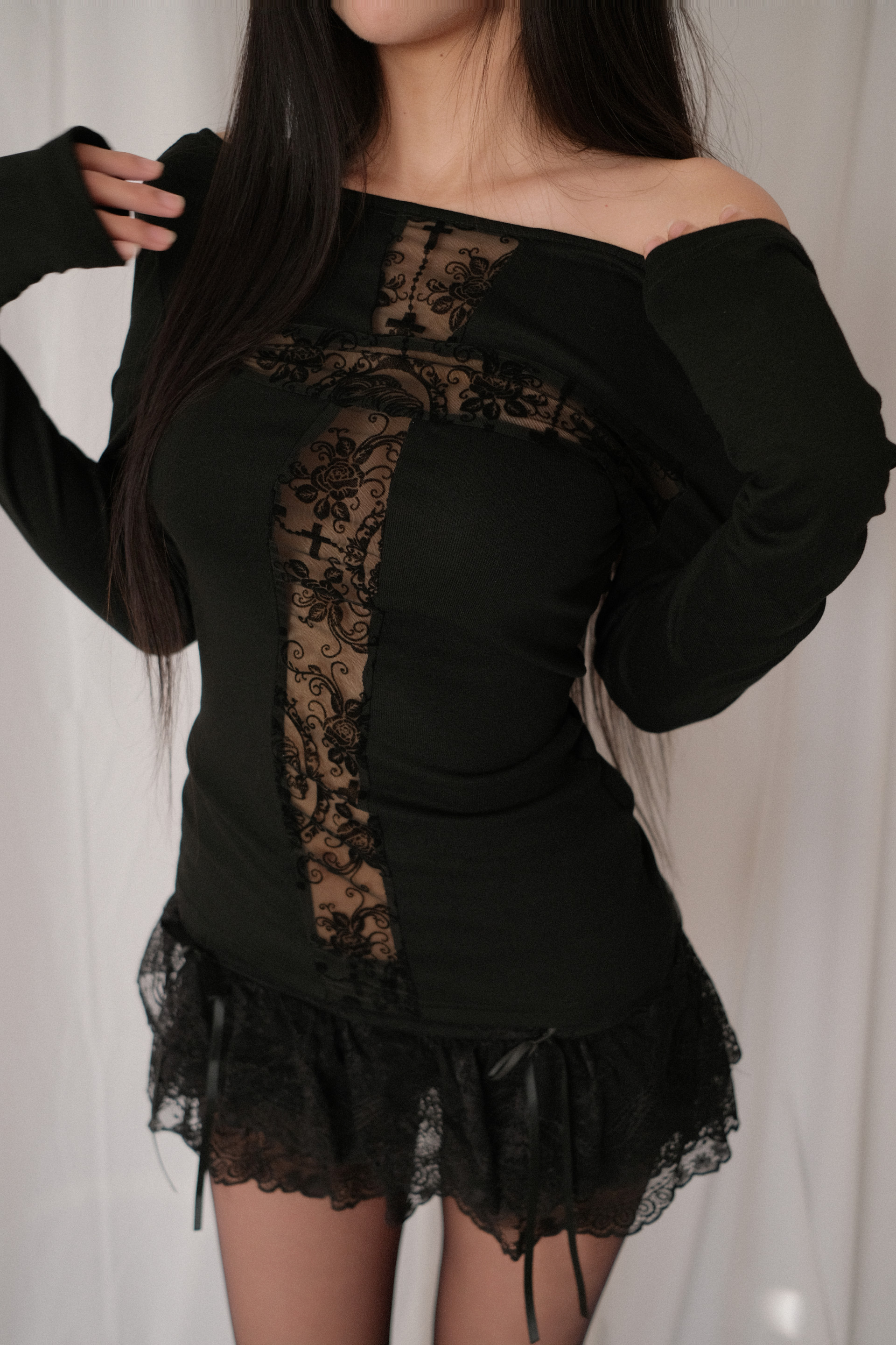 십자가 시스루 레이스 디테일